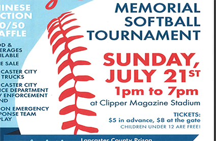 News 8 th Annual Memorial Softball Tournament keston.lyman Jun. 5, 2019 Social share icons Join your fellow Locals for a 8 th annual Memorial Softball Tournament celebration on Sunday, July 21st, from 1:00 pm to 7:00 pm at Clipper Magazine Stadium. We hope to see you there!Event Information here