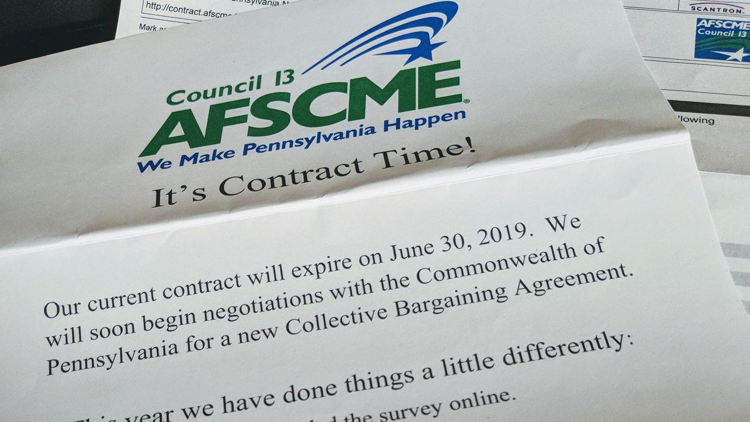 This mailer lets us know that the current contract expires on June 30, 2019 and that AFSCME will soon begin negotiations with the Commonwealth of Pennsylvania for a new collective bargaining agreement (union contract).