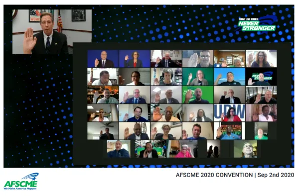 AFSCME International President, Secretary-Treasurer, and Vice Presidents are sworn in virtually.