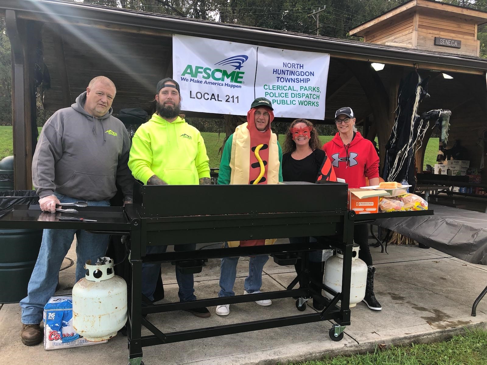 AFSCME Local 211 (North Huntingdon Township), featuring Local Union President Mike Dietz in a hot dog suit, gave out more than 800 hot dogs and chips at a local Trick-Or-Treat event.