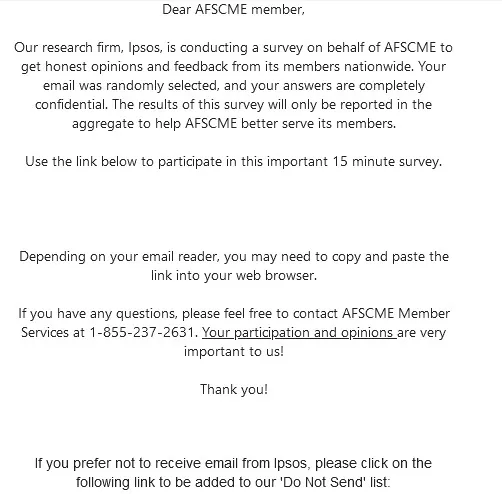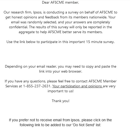 AFSCME International has contracted research firm Ipsos to survey members nationwide via email.