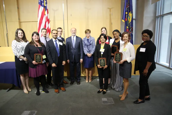 Department of Health employees received awards for successfully building Pennsylvania's Prescription Drug Monitoring Program (PDMP) in less than five months. The program is designed to help combat the heroin and opioid epidemic in Pennsylvania. To date, more than 71,000 healthcare professionals have accessed the database more than 3 million times. Congratulations to AFSCME Local 2162 (Dauphin County Trades & Labor) member Terry Calloway, as well as Jennifer Dugan, Ashley Parsons, Meghna Patel, Jared Shinabery, Norman Spotts and Dr. Carrie Thomas.