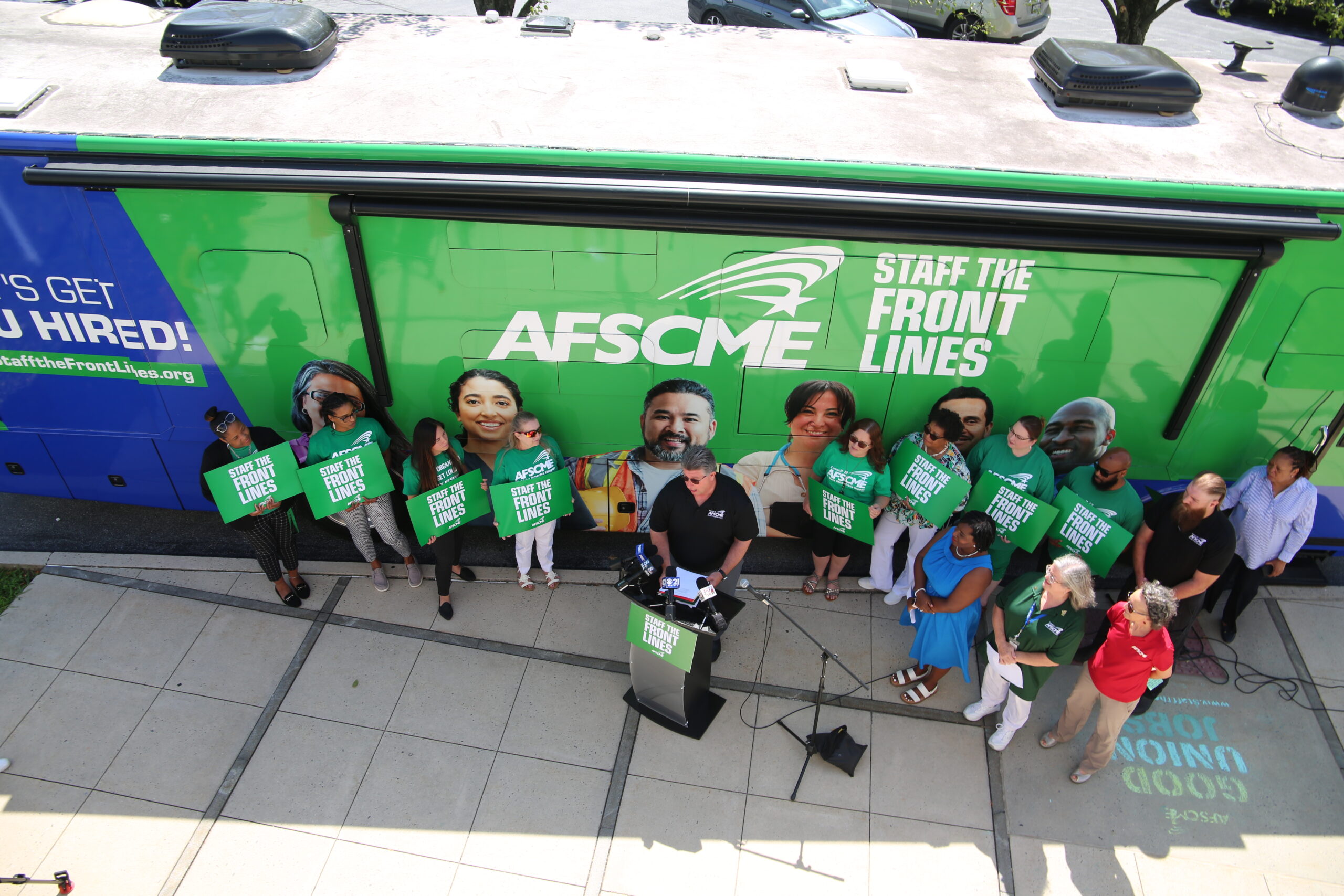 AFSCME launched the ‘Staff the Front Lines’ initiative this year to partner with elected officials on recruiting and retaining the essential public service workers who keep our communities running. The ‘Staff the Front Lines’ bus is holding recruitment events in more than 20 cities nationwide this summer.