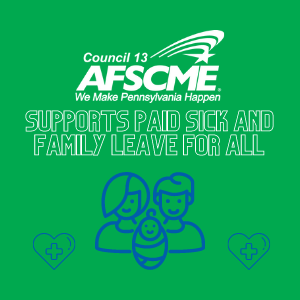 AFSCME Council 13 remains proud to stand on the side of working families, and we commend Governor Wolf, Senator Maria Collett (D-Montgomery County), Senator Vince Hughes (D-Philadelphia), and Representative Michael Schlossberg (D-Lehigh County), for their support on the issue of sick and family leave.