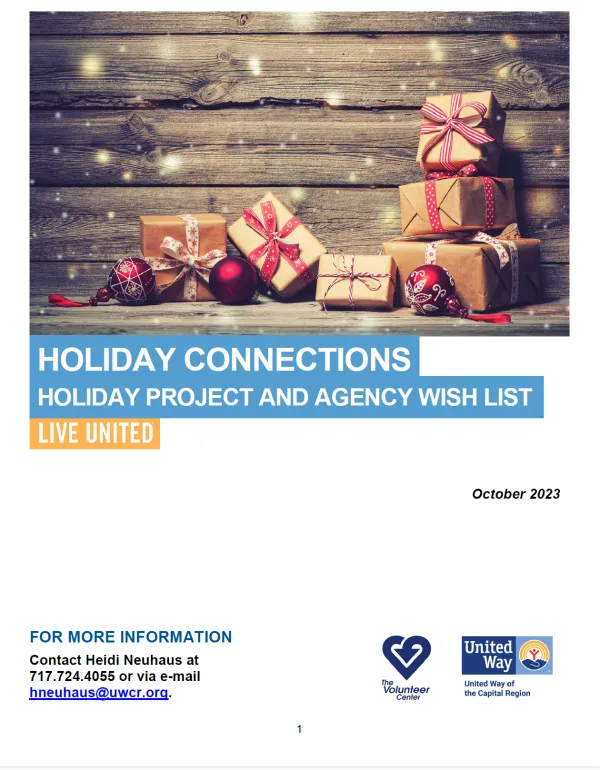 United Way of the Capital Region has published 'Holiday Connections,' a guide to the community service events and projects in central Pennsylvania available for you to volunteer with. This is a great reference for anyone looking to get involved and help others this holiday season!