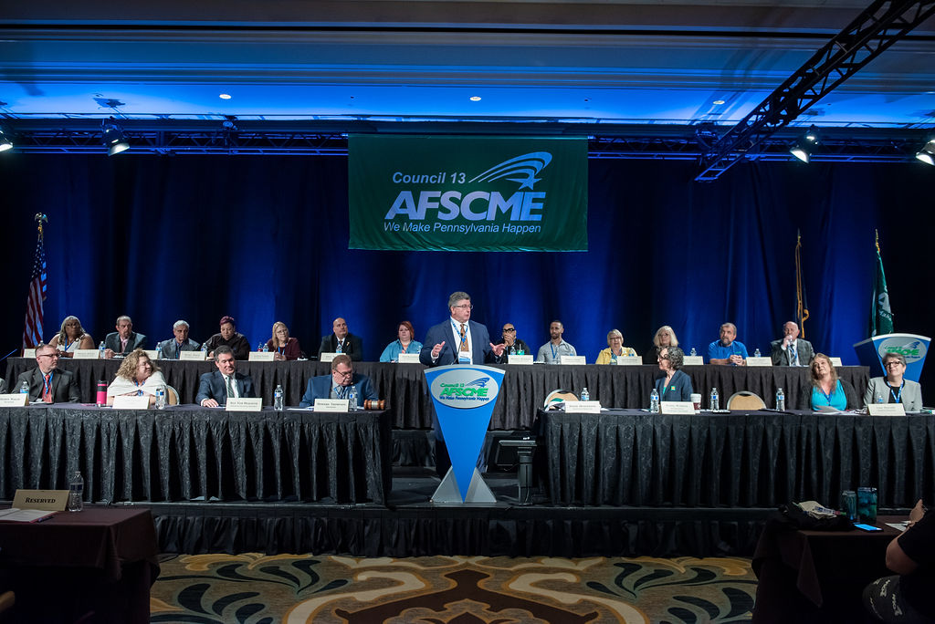 Delegates heard remarks from State Representative Tom Mehaffie, Council 13 President Howard Thompson, AFSCME International Secretary-Treasurer Elissa McBride, Pennsylvania Governor Josh Shapiro, and State Senator Vincent Hughes.