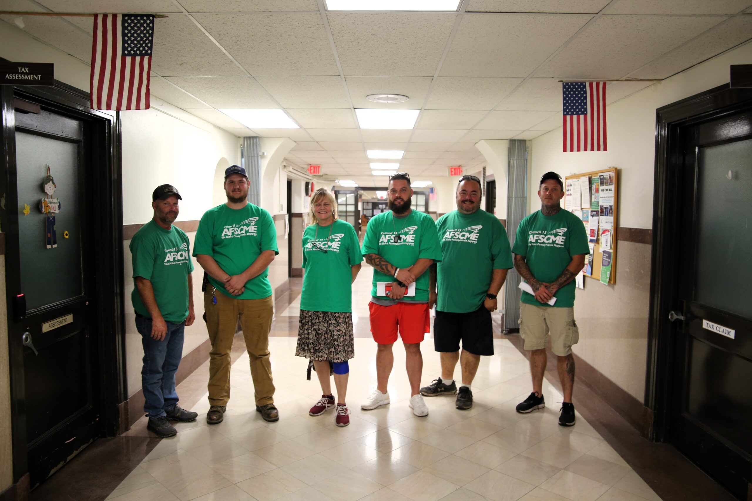Schuylkill County workers displayed their solidarity at a County Commissioners meeting as employees from the Municipal Authority showed up in support of their sisters and brothers working in the Courthouse. Local 1512 President Kathleen Gillespie spoke out about concerns over a privatization effort in the tax claim bureau. Union members received assurance from the commissioners that their jobs and union contract would be retained and respected through this process. AFSCME members in the county will continue to monitor this situation and have each other’s backs!
