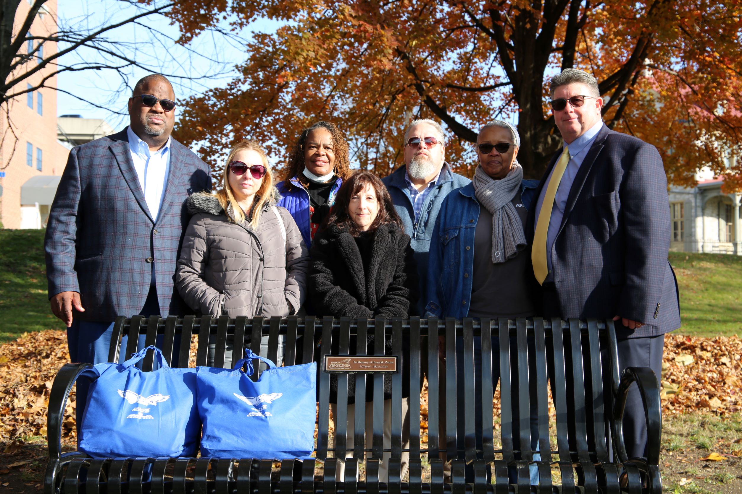 Friends, family, and union siblings of the late Juan Carter gathered in downtown Harrisburg on December 1, 2021, for a bench dedication ceremony to honor a man remembered for his big laugh and even bigger heart.