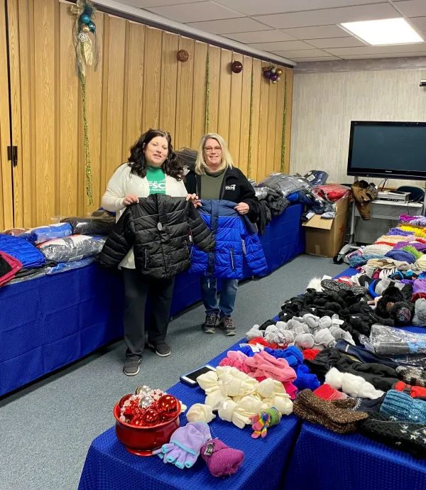 AFSCME District Council 83, Local 2344 (Torrance State Hospital), and Local 2411 (Cambria County Courthouse), joined with the Johnstown CLC to donate coats, hats, gloves, scarves, boots, and money to buy more coats. Pictured: DC 83 Staff Representative Kim George and President of Local 2344 and the Johnstown CLC Yvonne Buterbaugh.