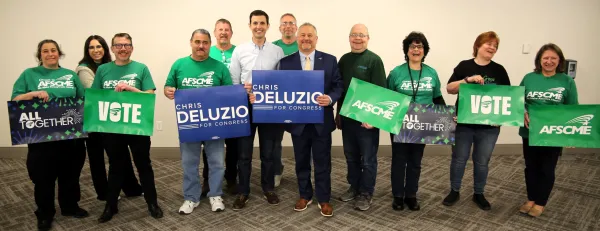 AFSCME members show their support for Congressman Chris Deluzio (PA-17) (6th from left), who recently introduced a national Public Sector OSHA bill.