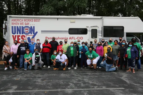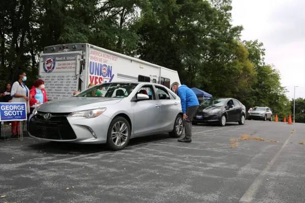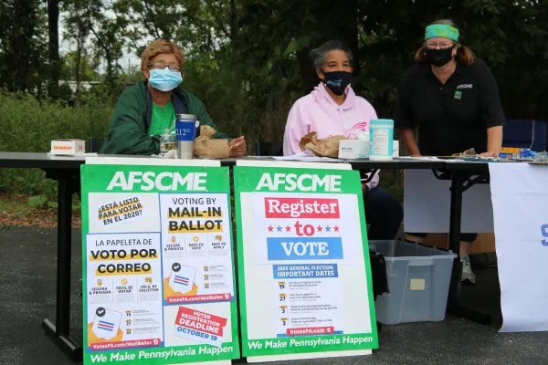AFSCME members, leaders, staff, and volunteers joined forces with the leaders of the Pennsylvania AFL-CIO and bipartisan candidates for State House and Senate to host a Voter Registration Drive-Thru in Harrisburg on September 12, 2020.